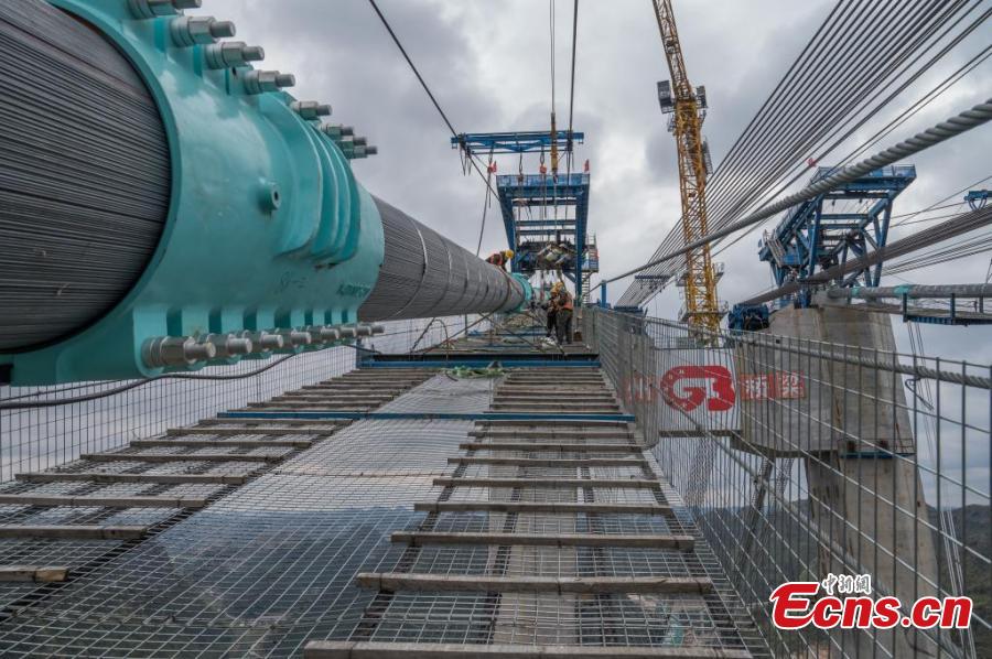 The 2,890-meter-long Huajiang grand canyon bridge is set to be the highest in the world after it is completed in 2025.