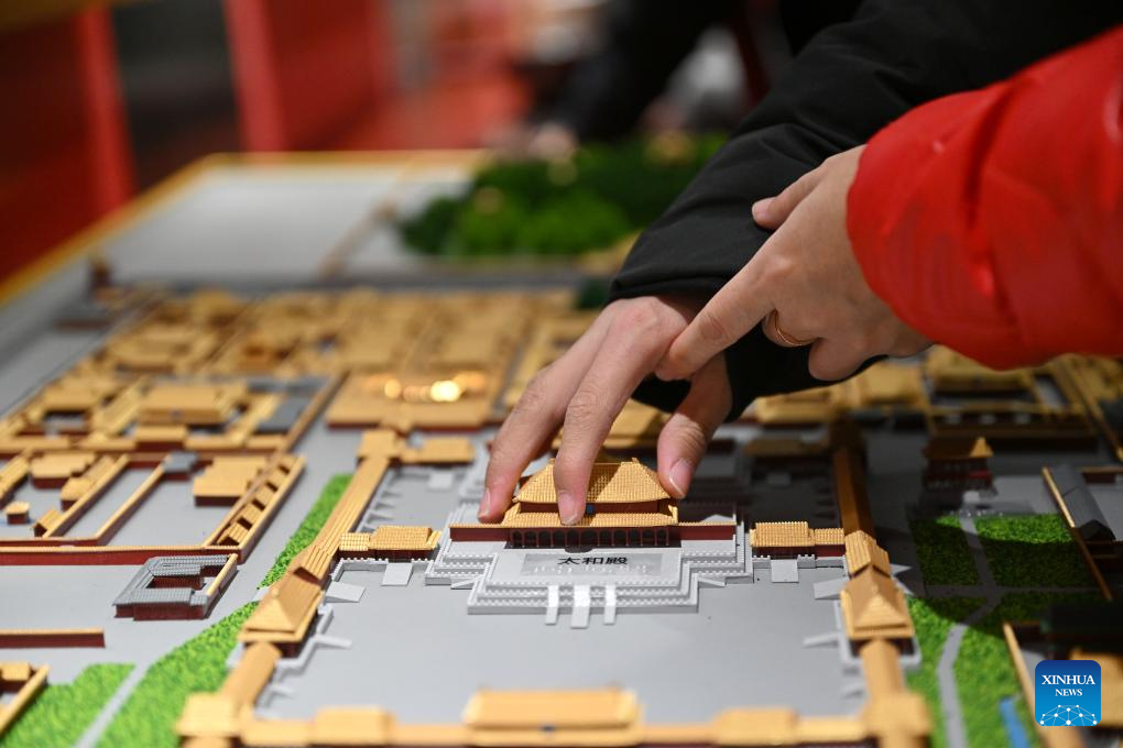 A student from the Beijing School for the Blind touches a sand table model of the Palace Museum at Sensory Experience Gallery of the Palace Museum in Beijing, capital of China, Dec. 1, 2024. Sensory Experience Gallery, co-founded by Palace Museum and China Disabled Persons' Federation, was inaugurated here on Sunday, featuring creative cultural works, cultural experiences, and study tours. It integrates multi-sensory experiences to make culture more accessible for people with disabilities. (Xinhua/Li Xin)