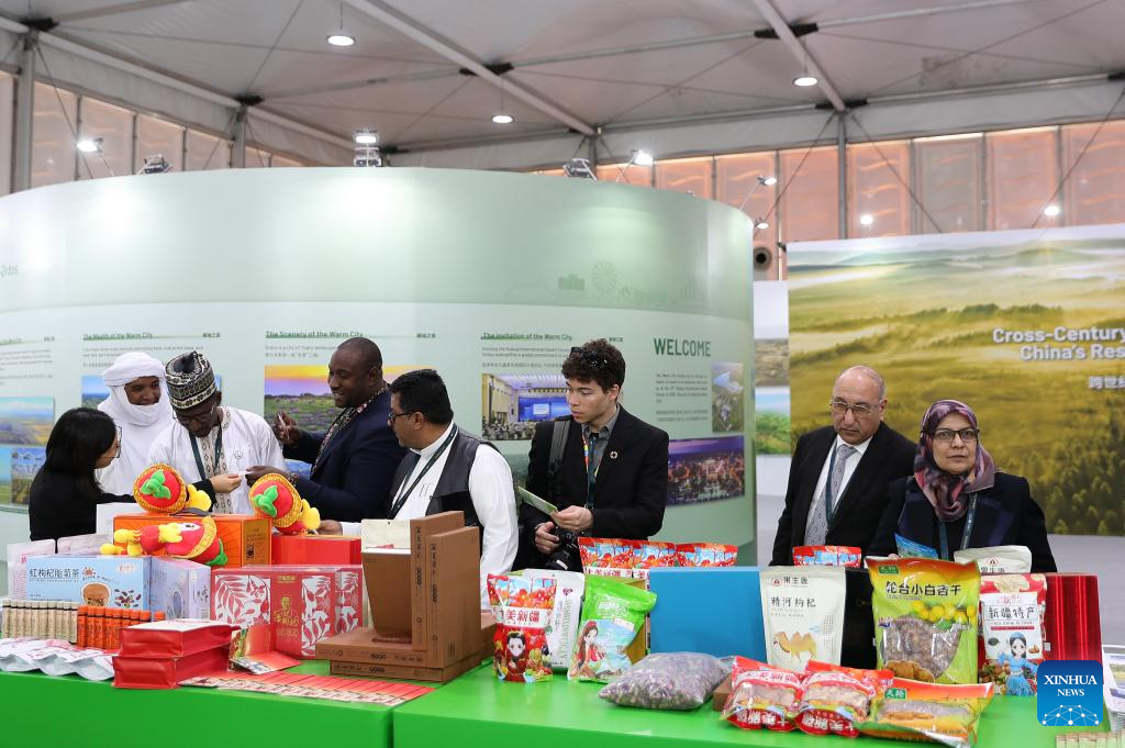People visit the China Pavilion at the 16th Conference of the Parties (COP16) to the United Nations Convention to Combat Desertification (UNCCD) in Riyadh, Saudi Arabia, on Dec. 2, 2024. The China Pavilion at the 16th Conference of the Parties (COP16) to the United Nations Convention to Combat Desertification (UNCCD) officially opened on Monday, highlighting China's decades-long efforts and achievements in combating desertification. (Xinhua/Wang Dongzhen)