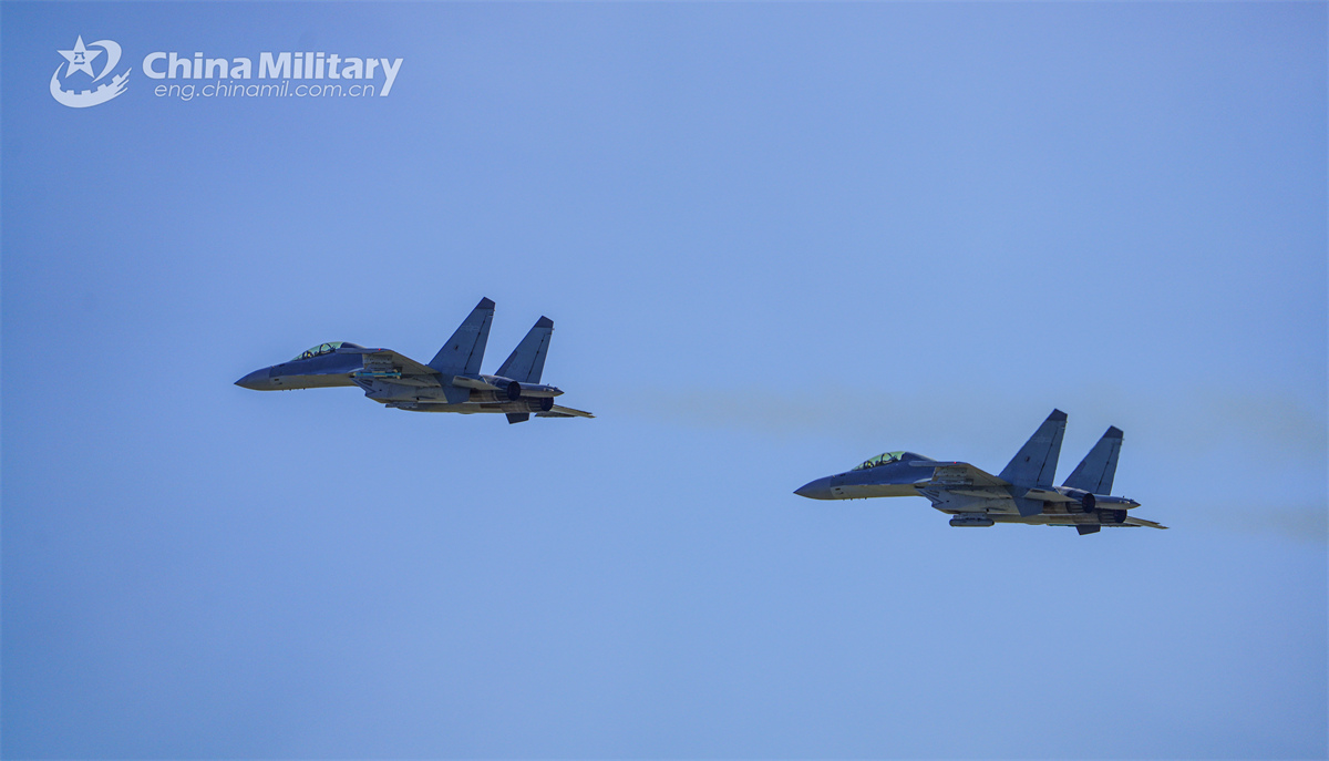 A J-16 multi-role fighter jet attached to an aviation brigade with the air force under the Chinese PLA Southern Theater Command soars in the sky during a flight training exercise on October 23, 2024. (eng.chinamil.com.cn/Photo by Zhao Yutong)