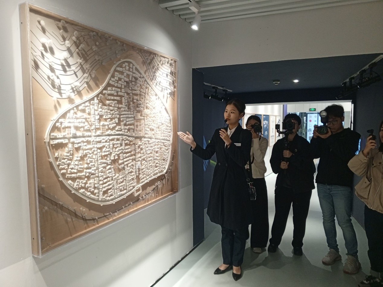 Journalists enjoy an in-depth guided tour of one of Nantou's revitalized historic buildings, now repurposed as a mini-museum showcasing the city’s architectural evolution over the centuries in Nantou Ancient City, Nanshan district, south China's Shenzhen, Nov. 28, 2024. (Photo/People's Daily Online)