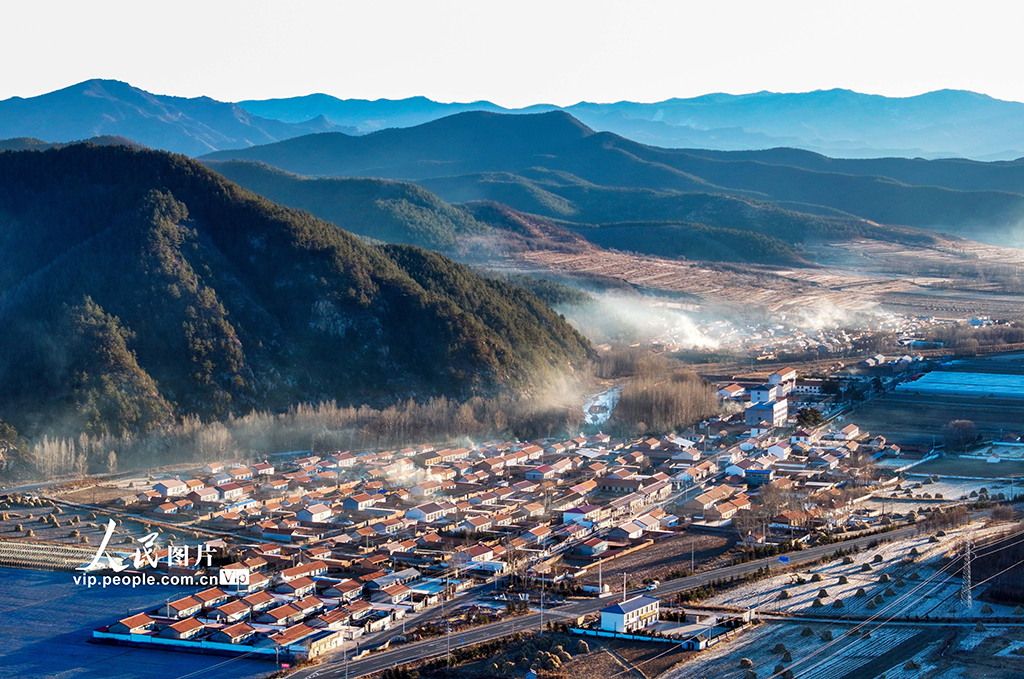 In early winter, Meilin Valley, located in Harqin Banner, Chifeng city, north China's Inner Mongolia Autonomous Region, is enveloped in mist, with winding snow paths, swaying wind turbines, and rolling mountains. Bathed in the warm glow of the morning sun, the landscape unfolds into a beautiful, picturesque winter scene.