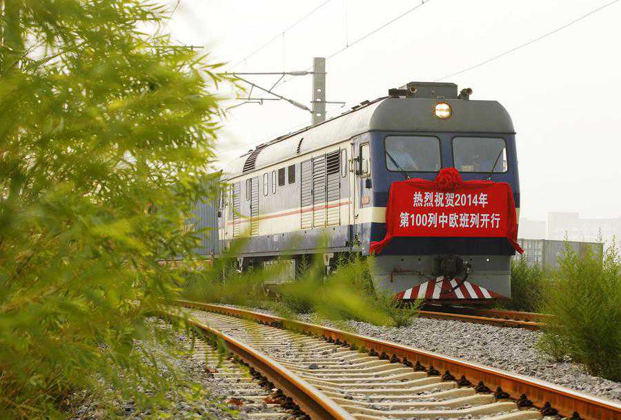 The 100th China-Europe freight train in 2014 departs from Zhengzhou Putian Container Center Station in Zhengzhou, central China's Henan Province, Aug. 1, 2014. (Xinhua/Xing Guangli)