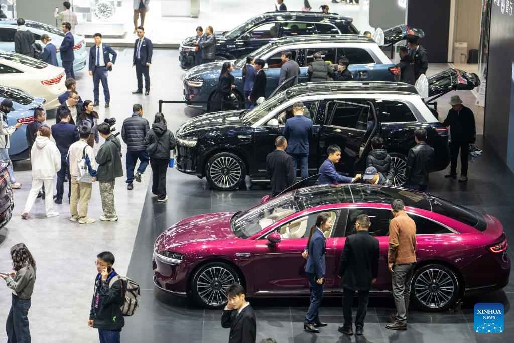 People visit the 20th China (Changsha) International Automobile Exposition in Changsha, central China's Hunan Province, Dec. 4, 2024. The 6-day exposition, with an exhibition area of 120,000 square meters, kicked off on Wednesday at the Changsha International Convention and Exhibition Center, showcasing more than 1,000 vehicles from over 80 automobile brands. (Xinhua/Chen Sihan)