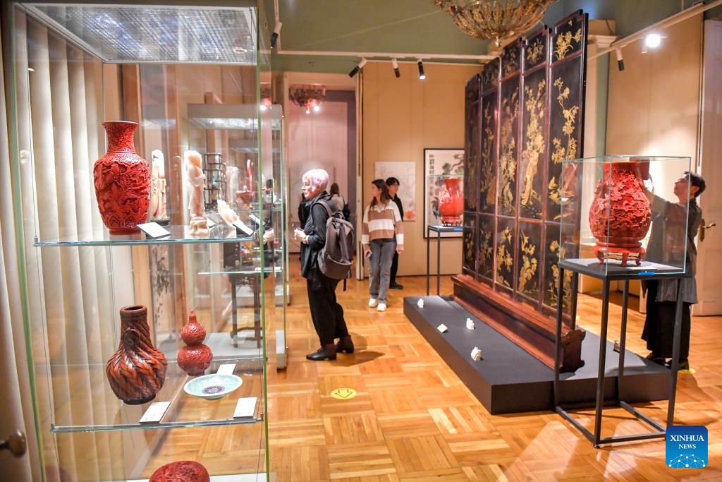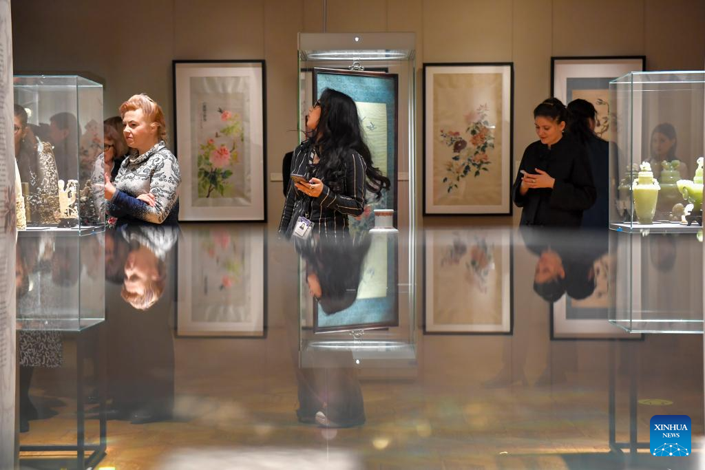 People visit an exhibition of Chinese art at the State Museum of Oriental Art in Moscow, capital of Russia, on Dec. 4, 2024. (Photo by Alexander Zemlianichenko Jr/Xinhua)