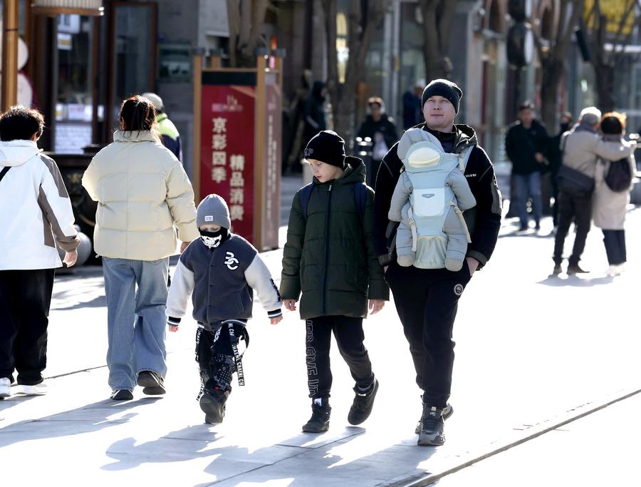 Foreign tourists visit Qianmen street in Beijing, capital of China, Dec. 5, 2024. (Xinhua/Zhang Chenlin)