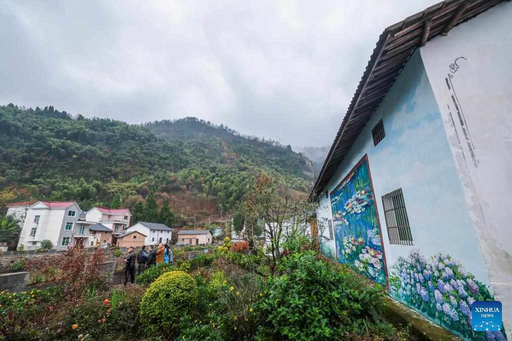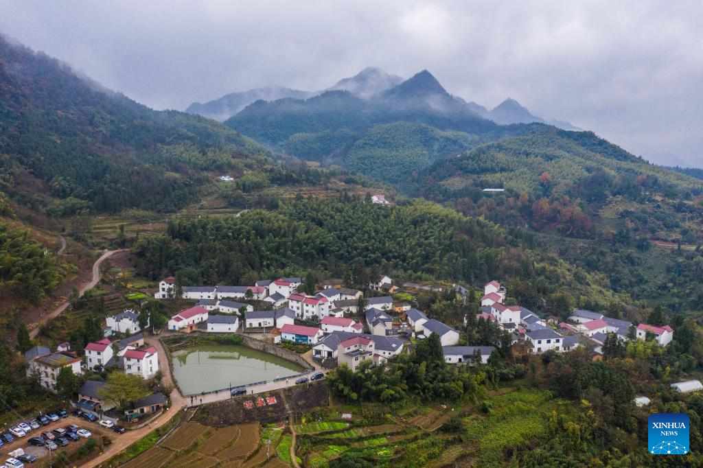 This photo taken on Dec. 6, 2024 shows a view of the Changling Village of Jiande City in east China's Zhejiang Province. An art exhibition, presenting more than 50 rural-themed watercolor paintings, opened in Changling Village on Friday.