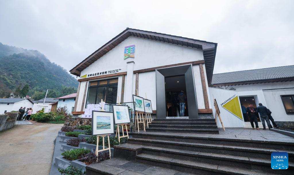This photo taken on Dec. 6, 2024 shows a view of the Changling Hill art space in Changling Village of Jiande City in east China's Zhejiang Province. An art exhibition, presenting more than 50 rural-themed watercolor paintings, opened in Changling Village on Friday.