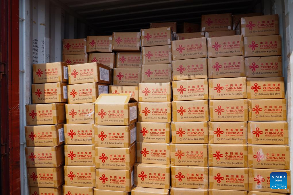This photo taken on Dec. 10, 2024 shows a batch of fabric from China in Colombo, Sri Lanka. Sri Lanka received a shipment of fabric from China on Tuesday as part of a larger grant to supply uniform materials benefiting approximately 4.6 million school children in 2025. (Xinhua/Wu Yue)