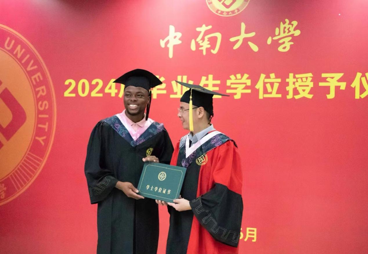 Odjo receives his bachelor's degree in international business from Central South University, central China's Hunan Province. (Photo provided by the interviewee)