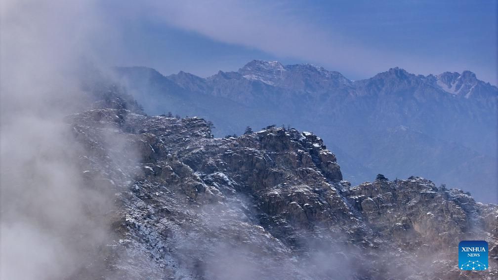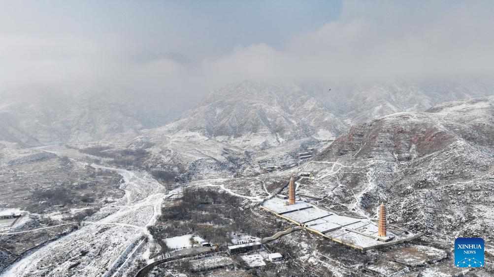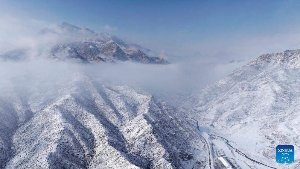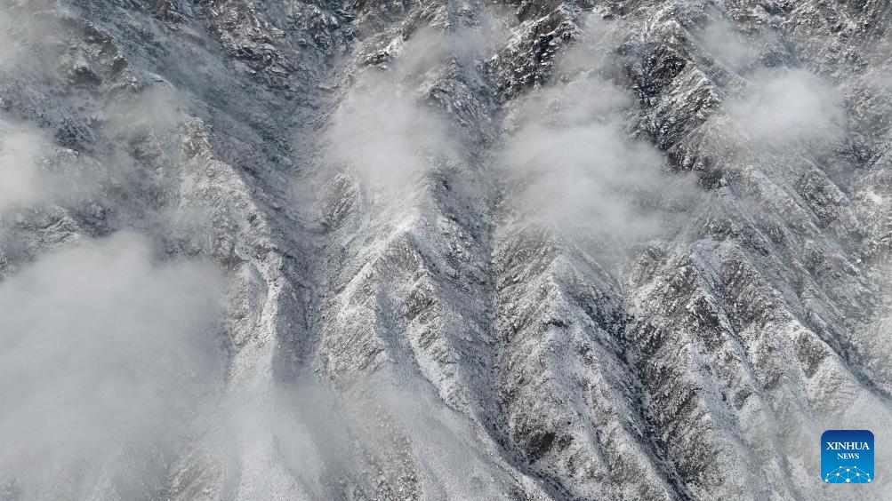 An aerial drone photo taken on Dec. 11, 2024 shows the scenery of Helan Mountain after snow in northwest China's Ningxia Hui Autonomous Region. (Xinhua/Wang Peng)