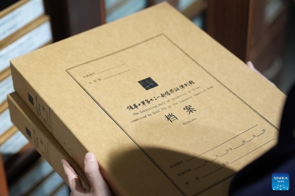 Archives are pictured at the former site of Unit 731 in Harbin, northeast China's Heilongjiang Province, Dec. 12, 2024. The former site of the notorious Japanese germ warfare army, known as Unit 731, reopened to public on Friday with a special exhibition on cultural relics and historical materials of Japan's germ-warfare crimes in China.