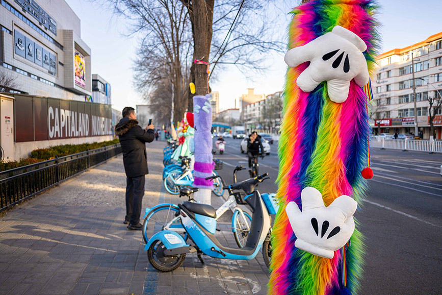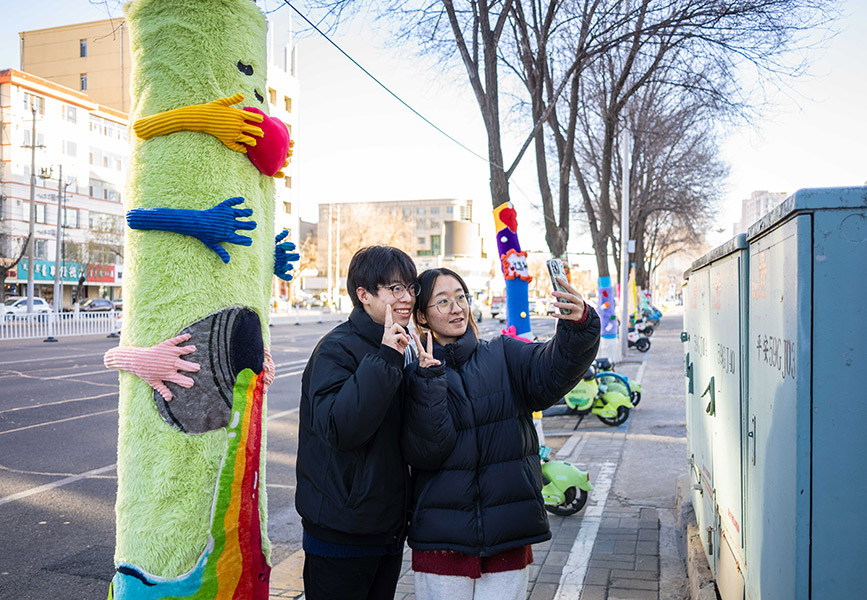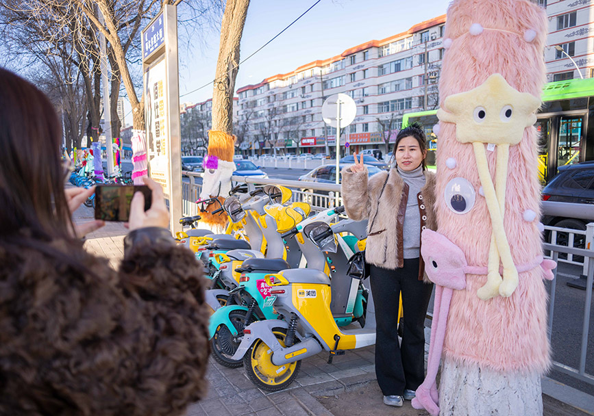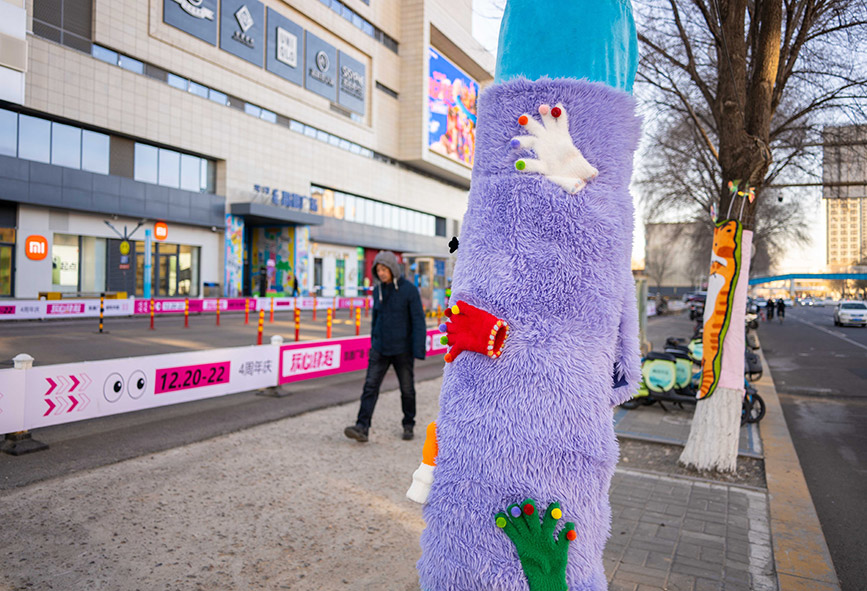 Recently, some trees around Kaide Square in Yuquan district, Hohhot city, north China's Inner Mongolia Autonomous Region, have been dressed in vibrant "sweaters," adding a playful touch to the streets and bringing an artistic atmosphere to the city's winter landscape.
