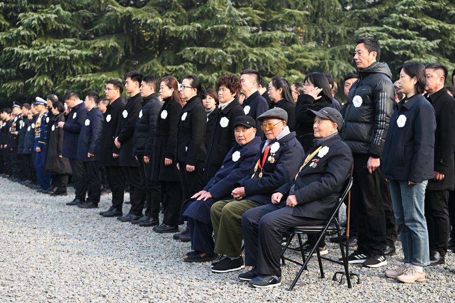 The 11th national memorial ceremony for the Nanjing Massacre victims is held at the Memorial Hall of the Victims in Nanjing Massacre by Japanese Invaders in Nanjing, capital of east China's Jiangsu Province, Dec. 13, 2024. (Xinhua/Ji Chunpeng)