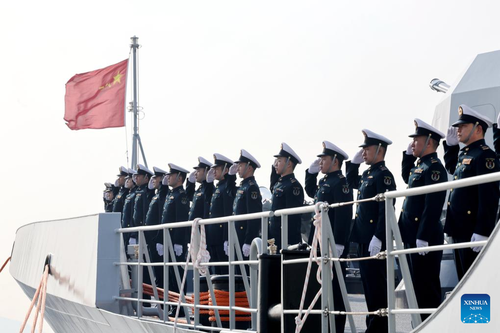 A farewell ceremony is held for a Chinese navy fleet at a port in Zhoushan, east China's Zhejiang Province, Dec. 15, 2024. A new fleet of the Chinese People's Liberation Army Navy set sail from a military port in Zhoushan, east China's Zhejiang Province on Sunday to take over an escort mission from the previous fleet in the Gulf of Aden and the waters off Somalia. (Photo by Yang Haifan/Xinhua)