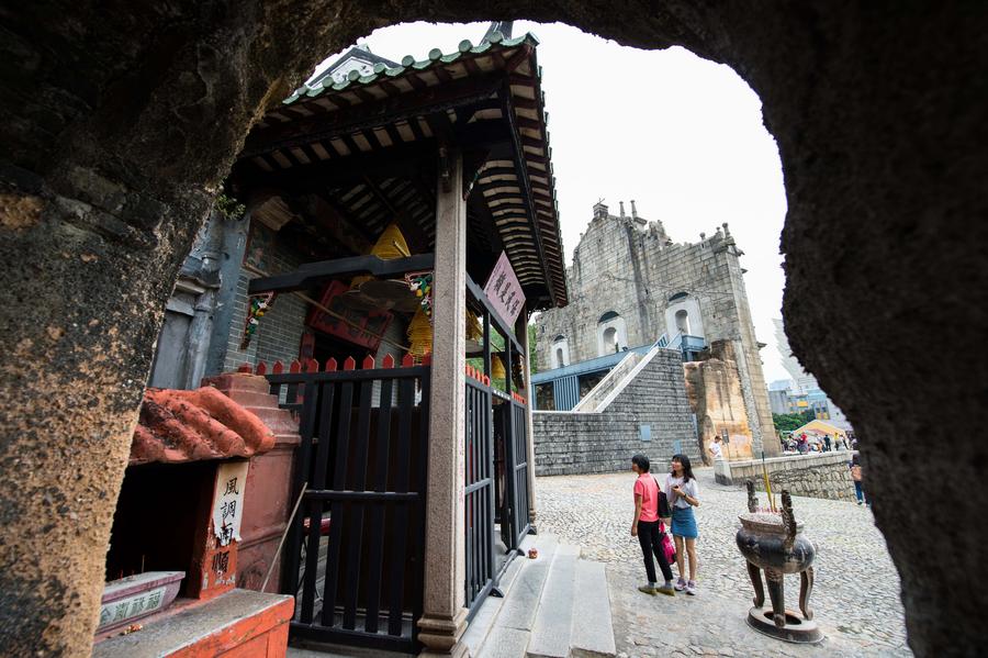 Tourists visit the Na Tcha Temple in south China's Macao, Oct. 9, 2016. (Xinhua/Cheong Kam Ka)