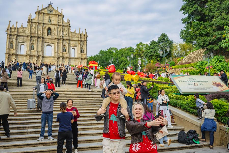 Tourists visit the historic center of Macao in south China's Macao, Dec. 12, 2024. (Xinhua/Zhu Wei)