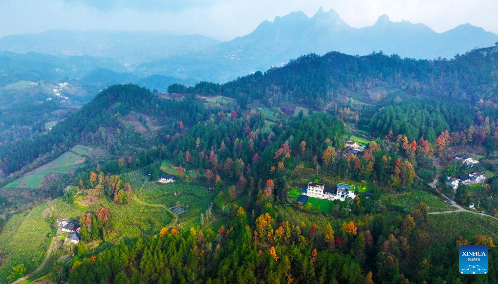 An aerial drone photo taken on Dec. 15, 2024 shows scenery of Shaba Town in Qianjiang District of southwest China's Chongqing Municipality. (Photo by Yang Min/Xinhua)
