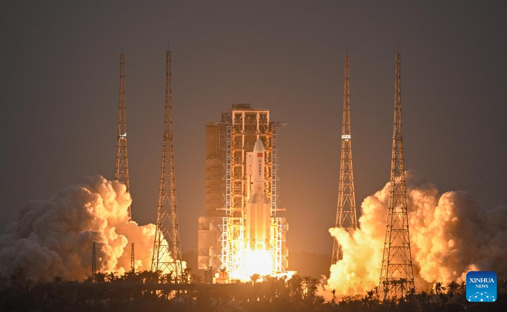 A group of low Earth orbit satellites is launched by a Long March-5B carrier rocket with a Yuanzheng-2 (Expedition-2) upper stage atop the rocket from the Wenchang Space Launch Site in south China's Hainan Province, Dec. 16, 2024. China successfully sent the first group of low Earth orbit satellites for a satellite internet constellation on Monday. At 6:00 p.m. (Beijing Time), this group of satellites was launched and the satellites have entered the preset orbits. (Xinhua/Yang Guanyu)