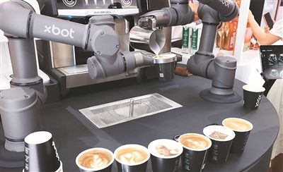 An automatic coffee machine makes coffee for visitors at the fourth China International Consumer Products Expo (CICPE) in Haikou, capital city of south China's Hainan Province. (Xinhua/Yang Guanyu)