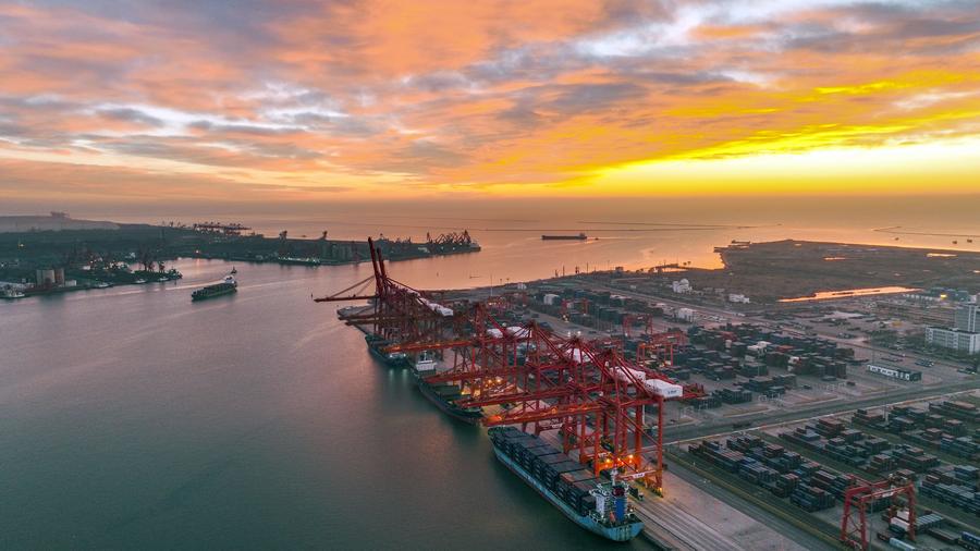 An aerial drone photo taken on Dec. 16, 2024 shows a view of Jingtang Port District of Tangshan Port in Tangshan City, north China's Hebei Province. (Photo by Li Lei/Xinhua)