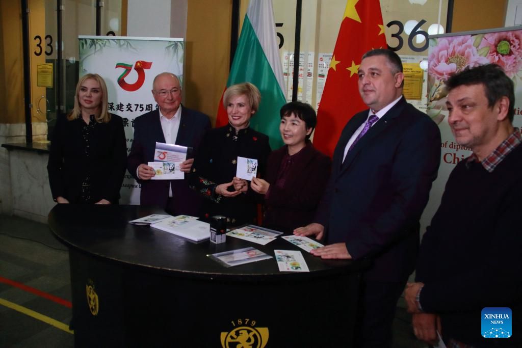 The launch ceremony of a postage stamp in celebration of the 75th anniversary of the establishment of diplomatic relations between Bulgaria and China is held in Sofia, Bulgaria, on Dec. 18, 2024. A special postage stamp marking the 75th anniversary of the establishment of diplomatic relations between Bulgaria and China was released at the ceremony here on Wednesday. (Photo by Marian Draganov/Xinhua)