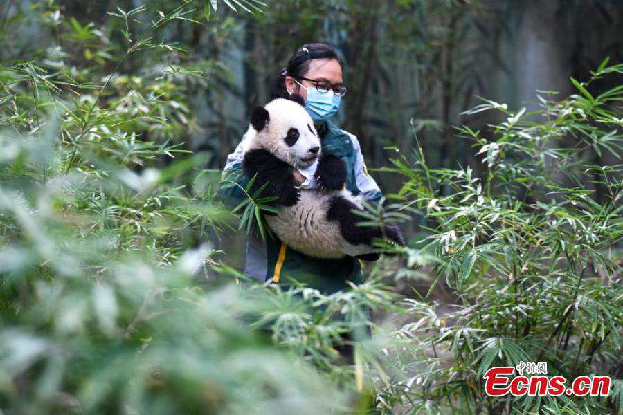 Panda cub turns half year old in Guangzhou