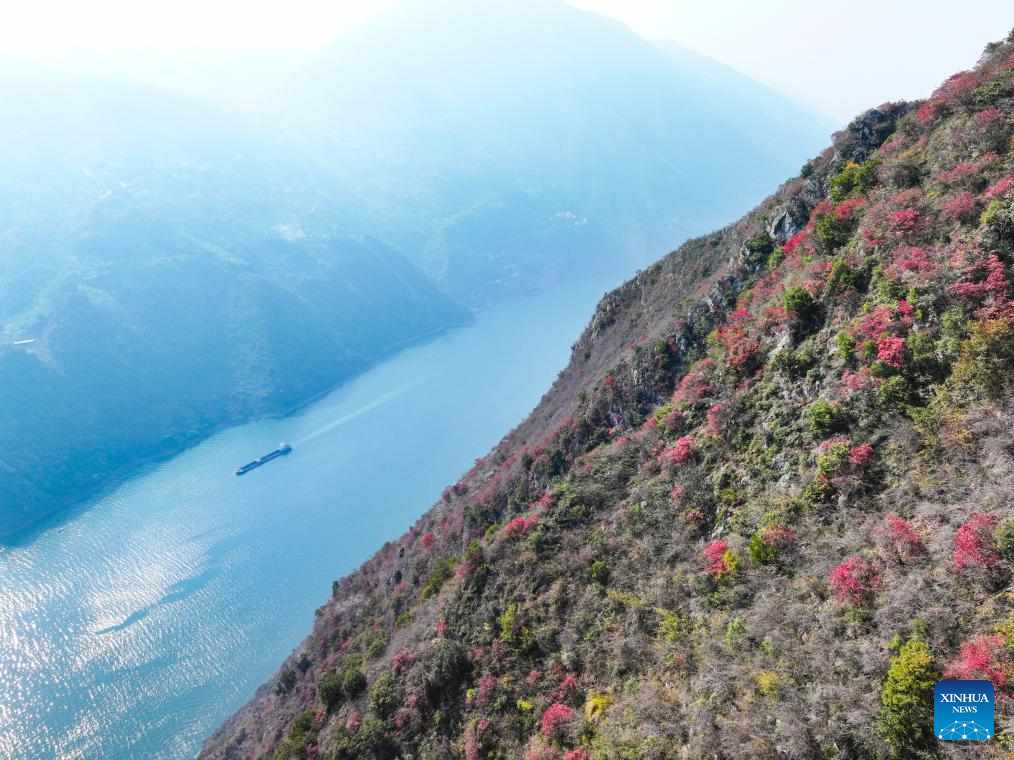 This photo shows a scenic spot near Wuxia Gorge, one of the Three Gorges on the Yangtze River, in Wushan County, southwest China's Chongqing, Dec. 18, 2024.