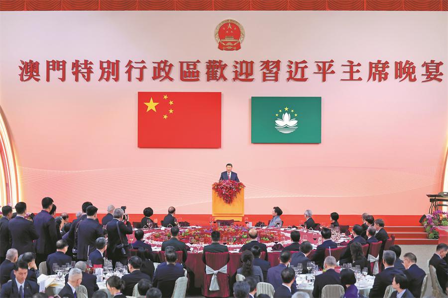 President Xi Jinping addresses a welcome dinner held by the Macao Special Administrative Region government on the eve of the 25th anniversary of Macao's return to the motherland, in Macao, Dec 19, 2024. (Photo/Xinhua)