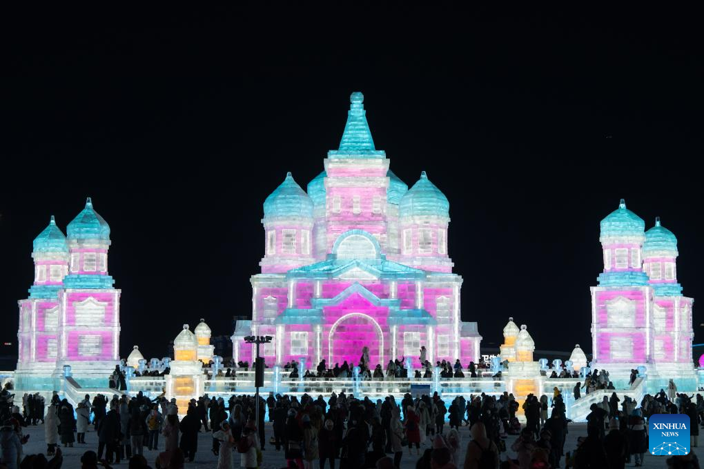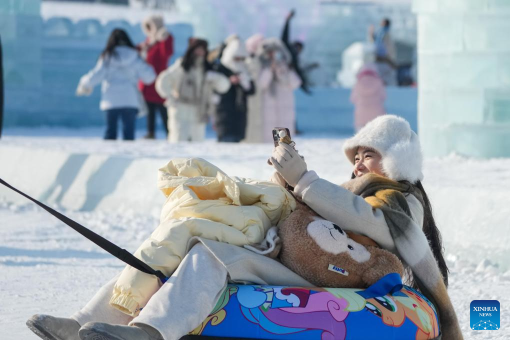 Tourists visit the Harbin Ice-Snow World, the world's largest ice-and-snow theme park, in Harbin, the capital city of northeast China's Heilongjiang Province, Dec. 21, 2024. (Xinhua/Yang Xuan)
