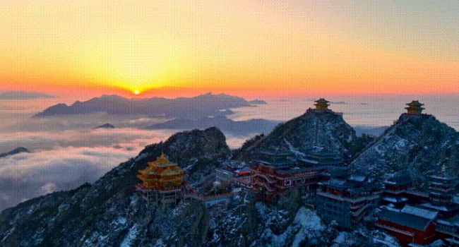In winter, the snow-covered mountain looks like a fairyland, offering breathtaking views of a swirling sea of clouds and mountains looming in the sea of clouds.