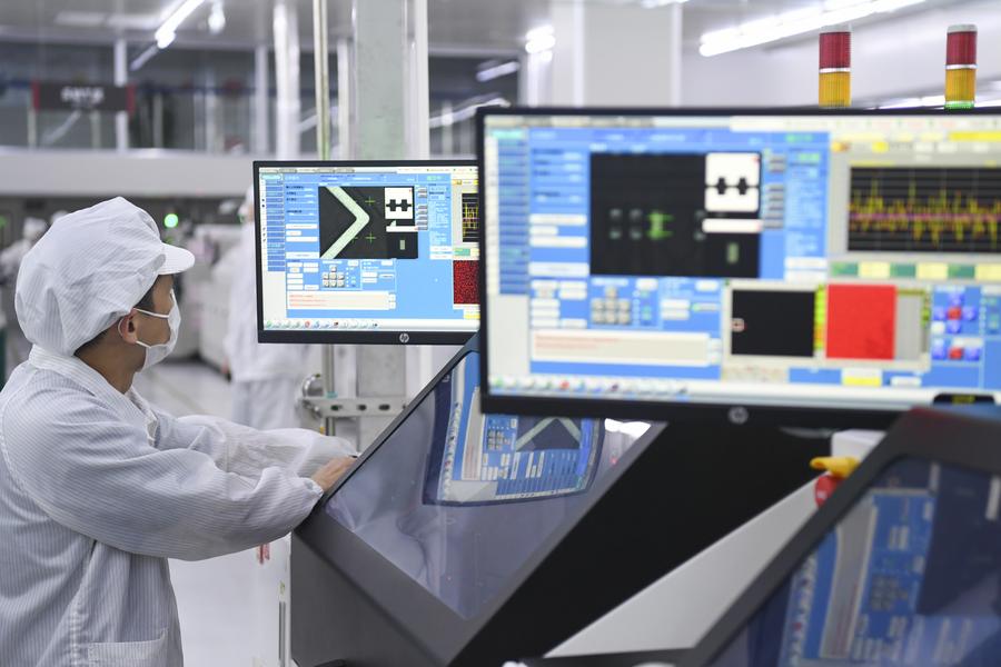 A staff member works at a display factory in southwest China's Chongqing Municipality, Sept. 20, 2024. (Xinhua/Wang Quanchao)