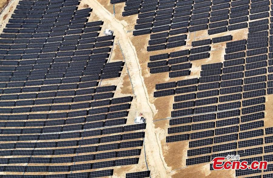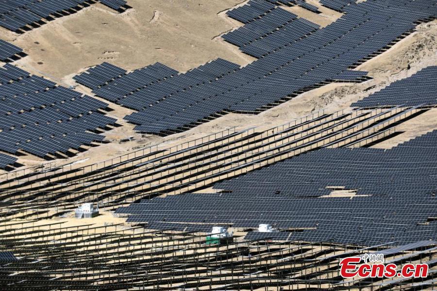 Aerial view of the first phase of the Kela Photovoltaic Power Station, the world's biggest and highest power station that uses both water and light to generate energy, Kela Township of Yajiang County, Garze Tibetan Autonomous Prefecture, southwest China's Sichuan Province, Dec. 23, 2024. (China News Service/Xue Di)