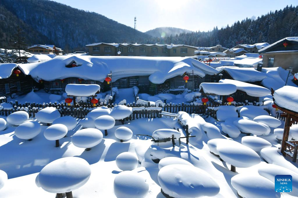 This photo taken on Dec. 24, 2024 shows the scenery at the "China's Snow Town" scenic spot in Mudanjiang, northeast China's Heilongjiang Province. (Photo by Wang Yanlong/Xinhua)