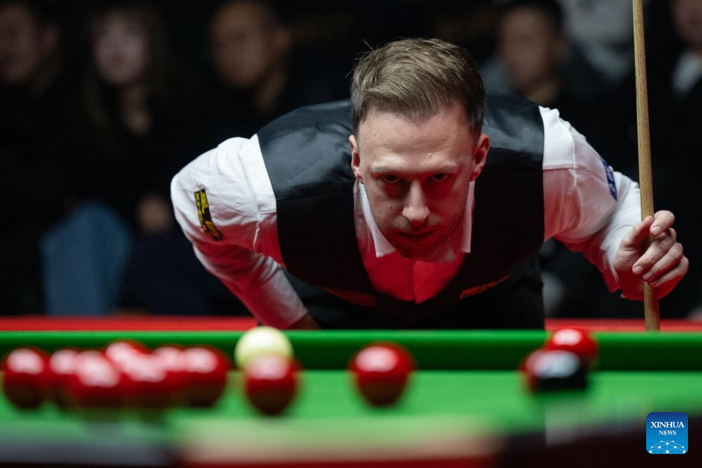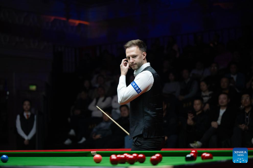 Judd Trump of England competes during the match against Ding Junhui of China at 2024 Macao Snooker Masters in south China's Macao, Dec. 25, 2024. (Xinhua/Cheong Kam Ka)