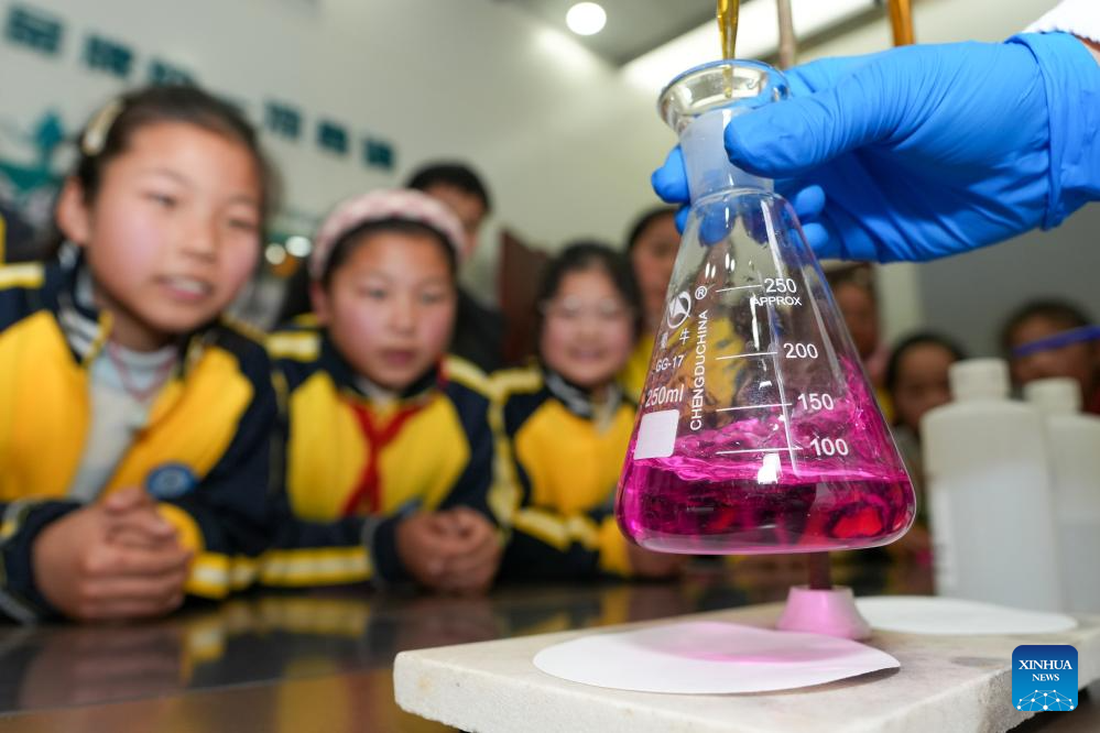 Students watch an experiment during a safety education session in Yangzhou, east China's Jiangsu Province, Dec. 26, 2024. Several departments in Yangzhou jointly carried out safety education and publicity activities for primary and secondary school students, enhancing their safety awareness and improving their safety prevention skills. (Xinhua/Li Bo)