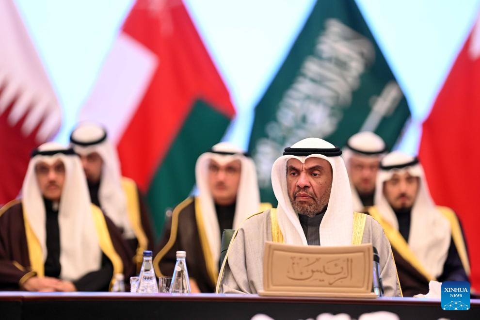 Representatives attend the 46th extraordinary session of the Gulf Cooperation Council (GCC) Ministerial Council in Kuwait City, Kuwait, on Dec. 26, 2024. The Gulf Cooperation Council (GCC) Ministerial Council on Thursday urged Syrian parties "to prioritize national interests" and reaffirmed support for Lebanon's sovereignty during its 46th extraordinary session in Kuwait. (Photo by Asad/Xinhua)
