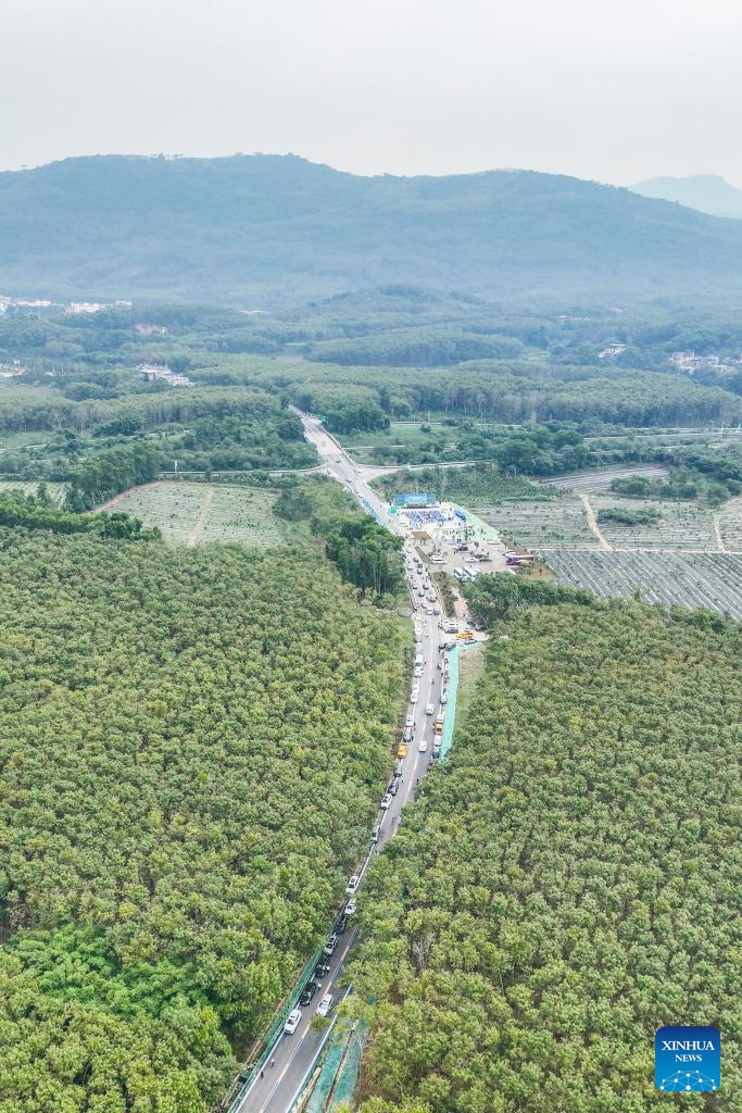 The 446-kilometer ring road opened to public traffic here on Sunday. Winding through nine cities and counties on this island province, the ring road plays a critical role in the transportation system at the rain forest park. (Xinhua/Zhang Liyun)