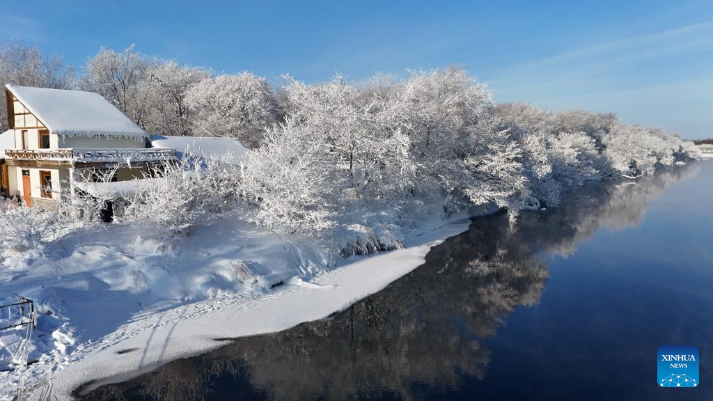 This aerial drone photo taken on Dec. 30, 2024 shows rime scenery at a scenic spot in Wudalianchi City of northeast China's Heilongjiang Province. (Xinhua/Ding He)