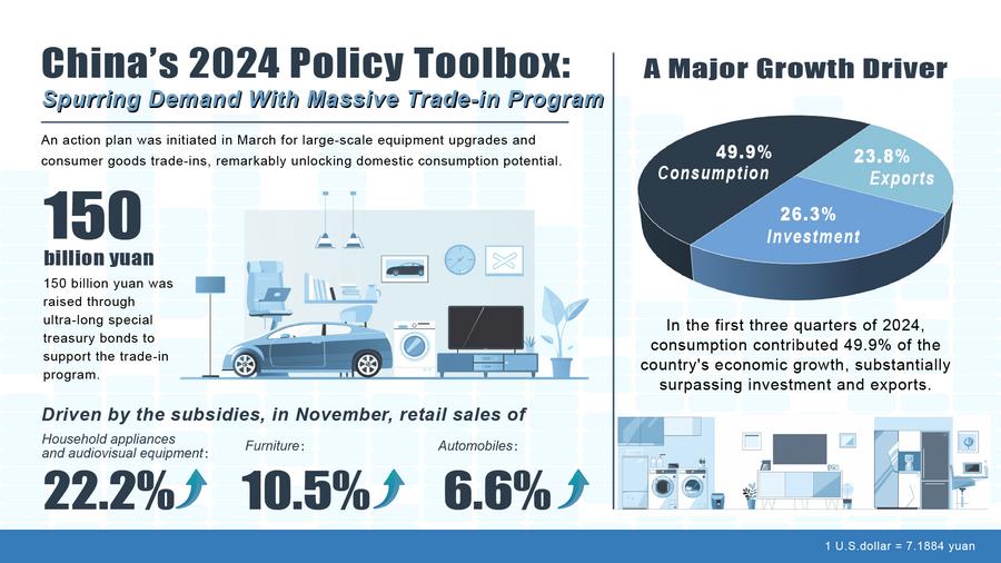 Some policies have already proved effective, including a consumer goods trade-in initiative, which is supported by 150 billion yuan (approximately 20.55 billion U.S. dollars) in funding raised through ultra-long special treasury bonds allocated to local governments.