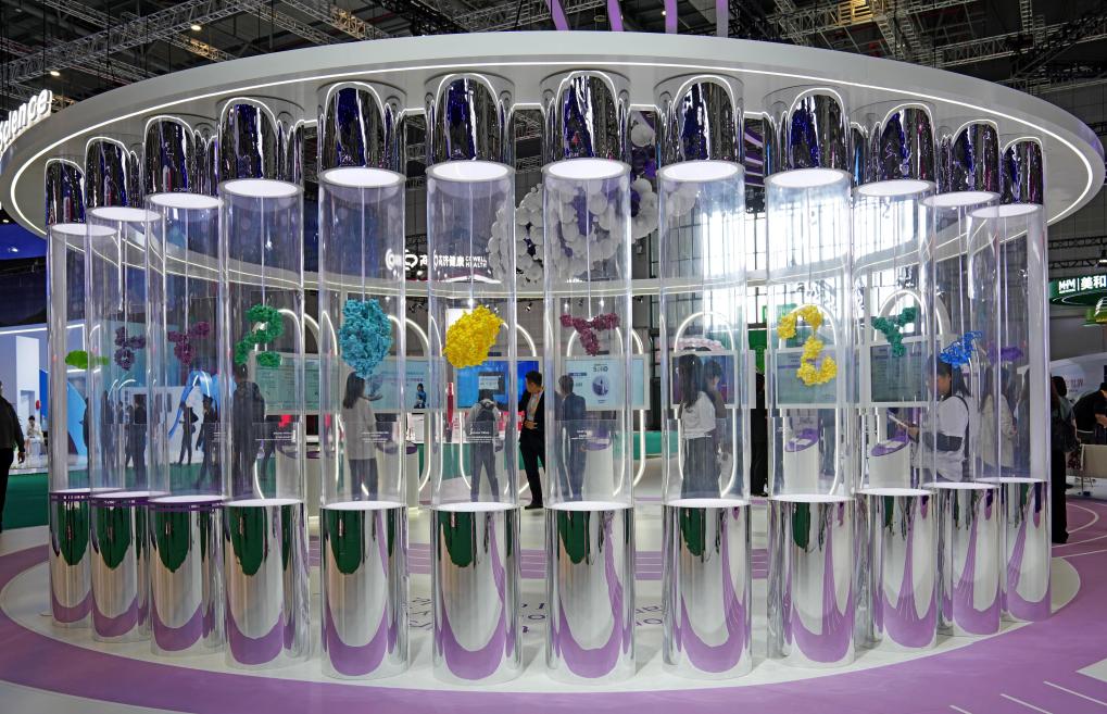 This photo taken on Nov. 8, 2024 shows the booth of Sanofi, a full-time attender of the China International Import Expo (CIIE), during the 7th CIIE in east China's Shanghai. (Xinhua/Liu Ying)