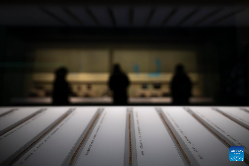 This photo taken on Dec. 31, 2024 shows a set of bamboo slips on display at the exhibition "A Panorama of Hubei" in Wuhan, central China's Hubei Province. The exhibition opened here on Tuesday, showcasing the history and culture of Hubei in both ancient and modern times. (Xinhua/Wu Zhizun)