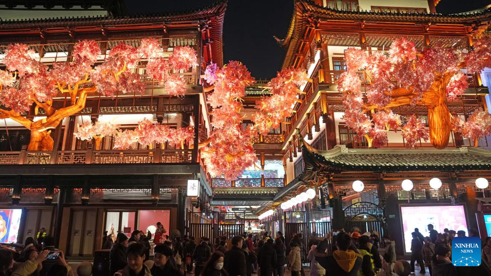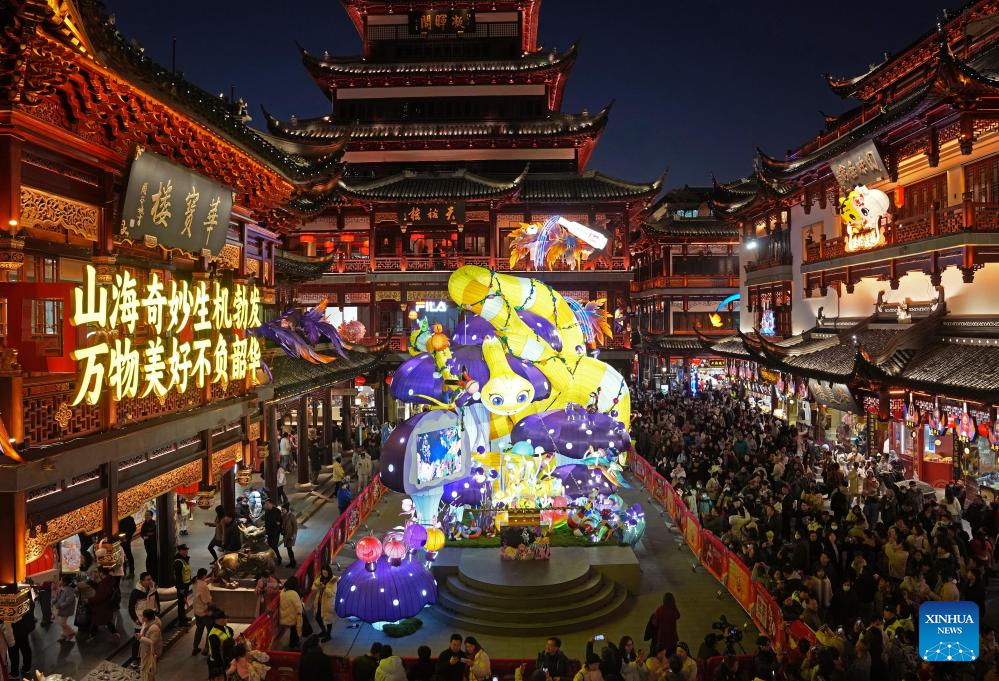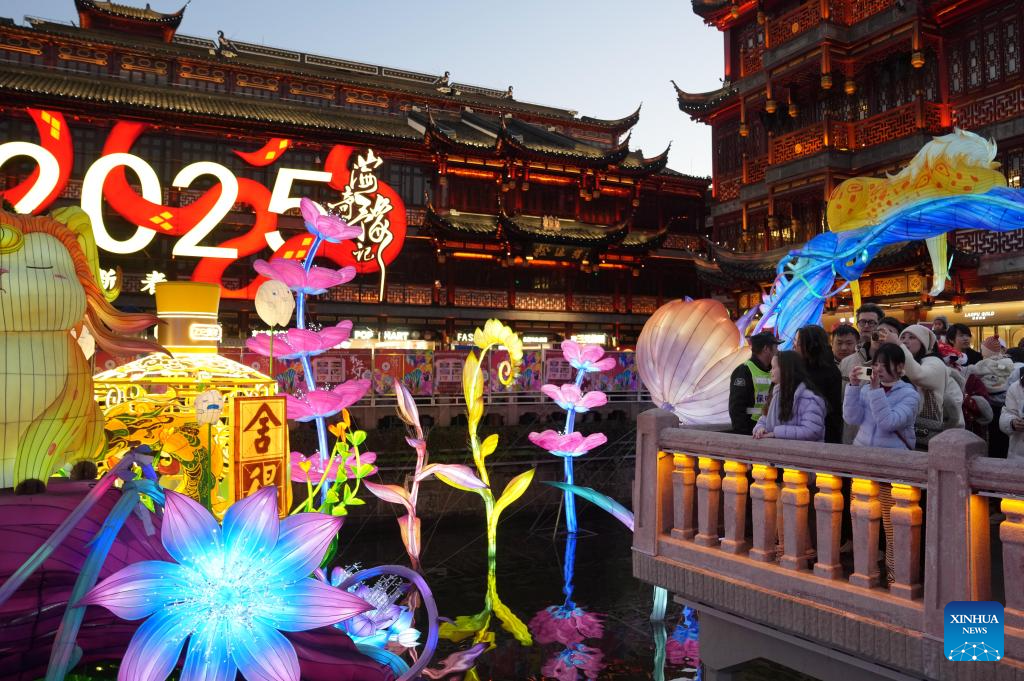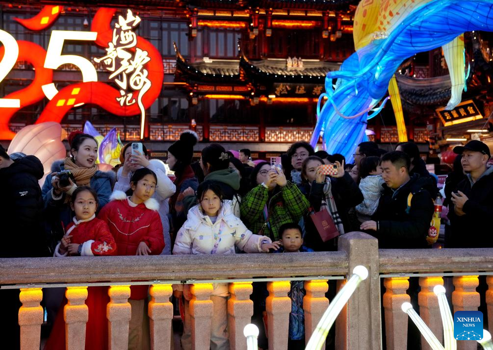 People visit the Yuyuan Garden Lantern Festival at Yuyuan Garden Mall in east China's Shanghai, Jan. 1, 2025. With the Chinese Lunar New Year just around the corner, Shanghai's Yuyuan Garden has again donned a festive look with hundreds of delicate, illuminated lanterns.