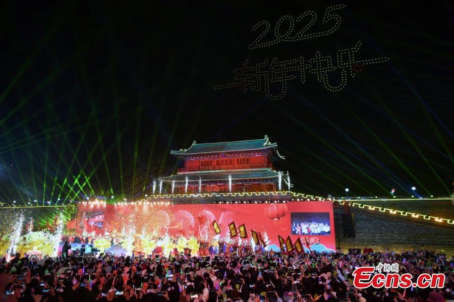 People participate in a New Year celebration held at Zhengding ancient town in Shijiazhuang, north China's Hebei Province, Dec. 31, 2024. (China News Service/Zhang Xiangyi)