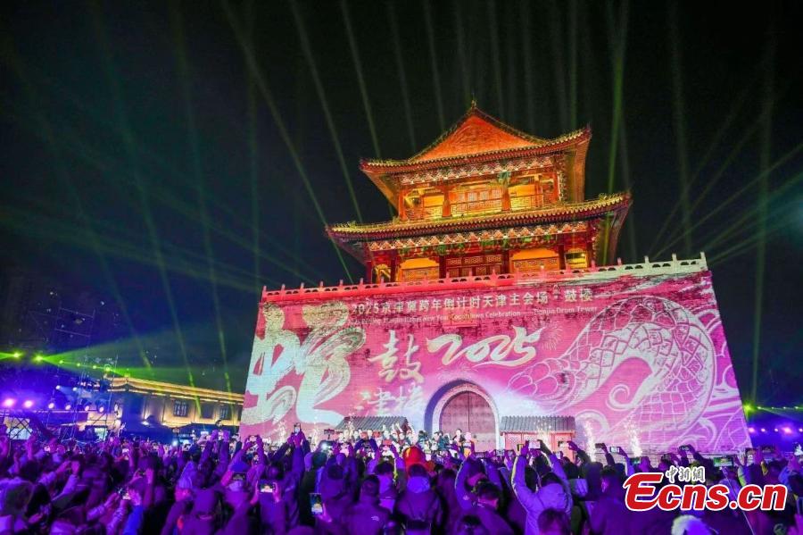 People participate in a new year celebration held at Gulou Square in Tianjin, Dec. 31, 2024. (China News Service/Zhang Xiangyi)