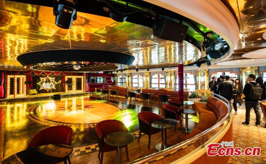 An interior view of the Piano Land (or Gulangyu Island), a luxury cruise ship at Harbour City Pier, Tsim Sha Tsui, the Hong Kong Special Administrative Region, Jan. 1, 2025. (China News Service/Hou Yu)