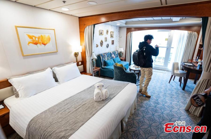 The 70,000-ton luxury ship, China's first independently operated state-owned cruise vessel has a capacity of 1,700 passengers. Measuring 261 meters long and 32 meters wide, it features 13 decks and 850 guest rooms. With Hong Kong as its home port, the ship embarked on its maiden voyage on Wednesday.