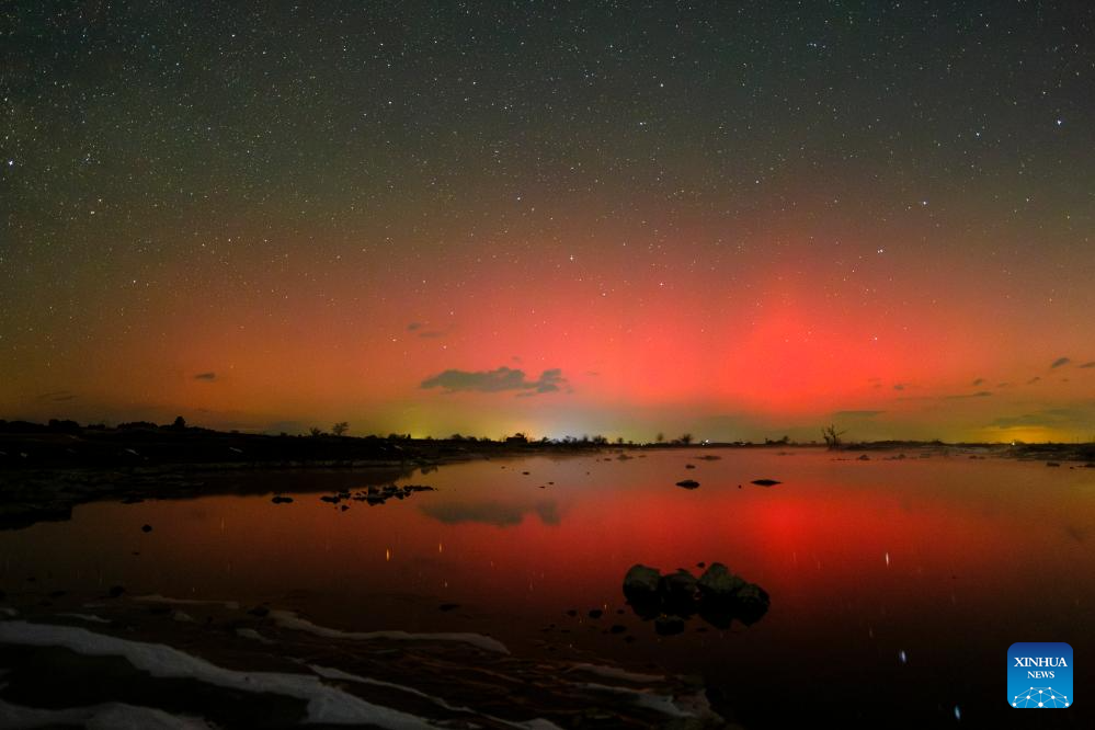 This photo taken on Jan. 1, 2025 shows the aurora seen at night in Mudanjiang City, northeast China's Heilongjiang Province. (Photo by Wang Baoxun/Xinhua)