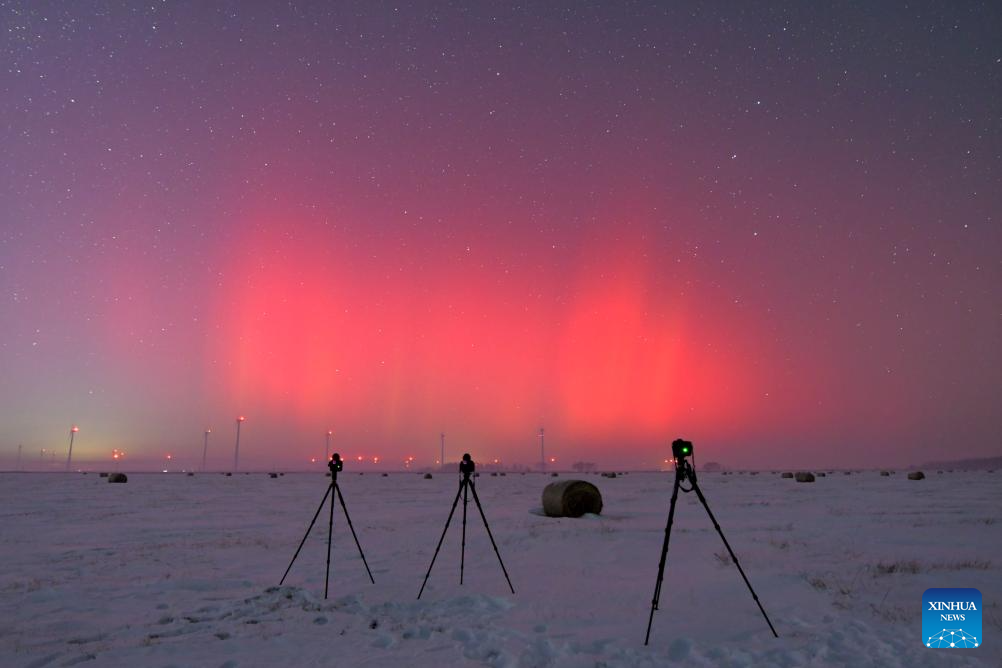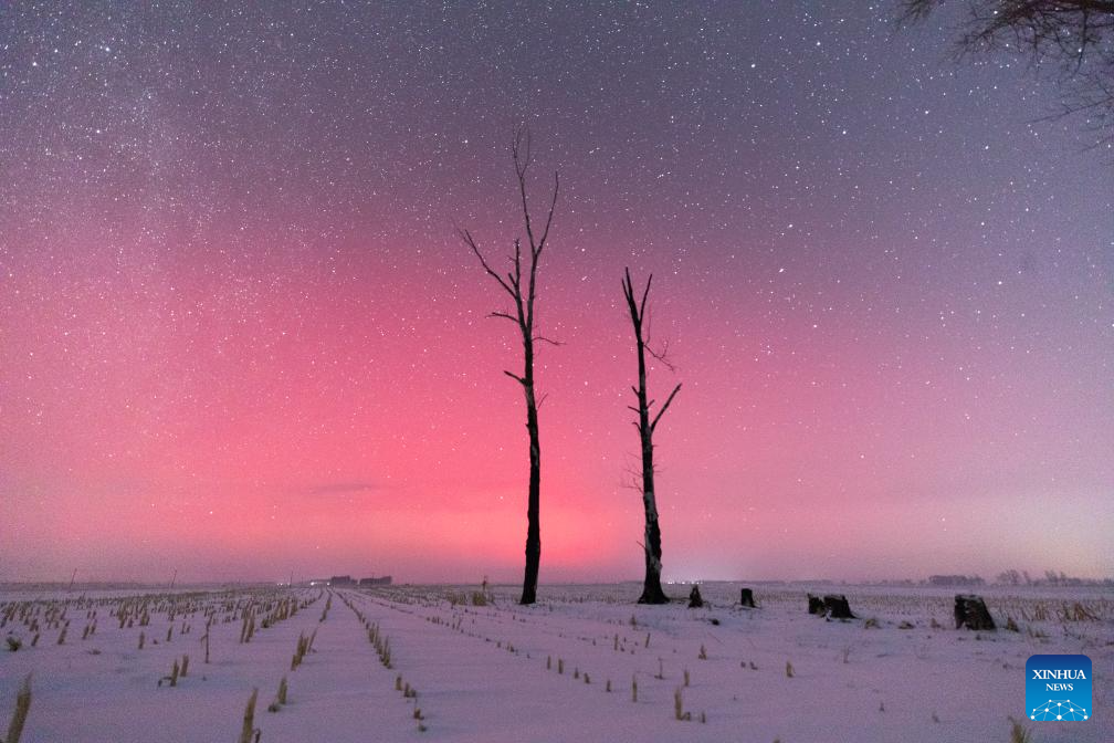 This photo taken on Jan. 2, 2025 shows the aurora seen in Qiqihar City, northeast China's Heilongjiang Province. (Photo by Wang Yonggang/Xinhua)
