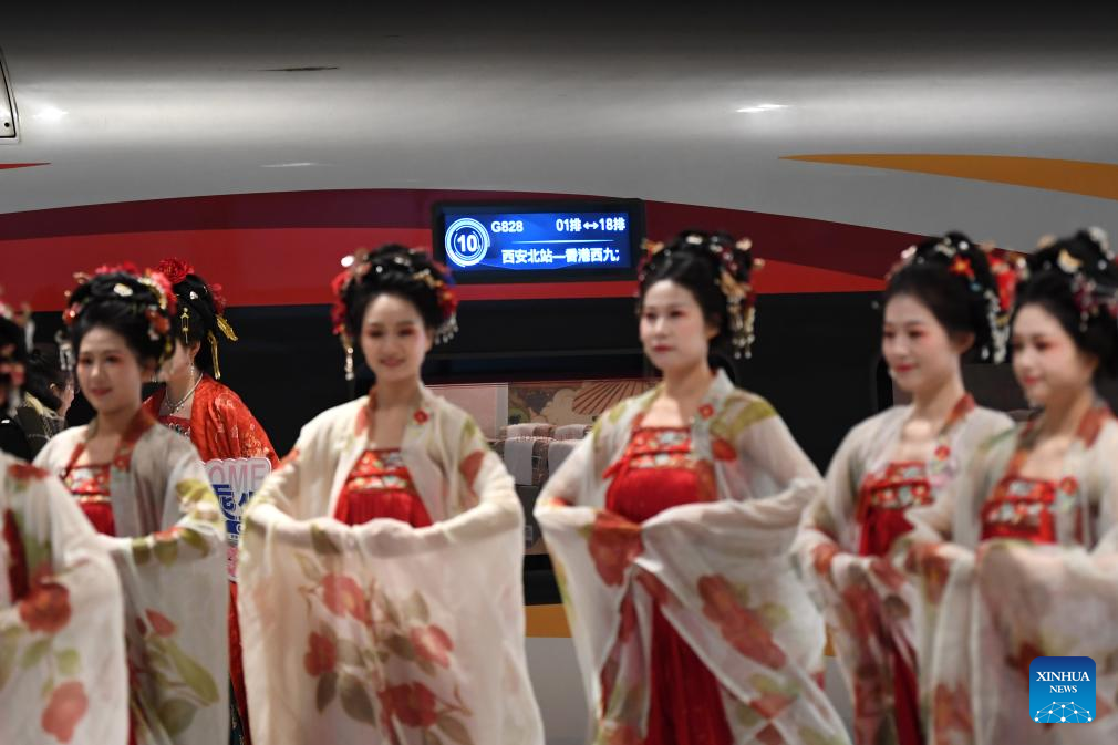 A train departed from Xi'an, the capital of northwest China's Shaanxi Province, at 11:04 a.m., and another left Wuhan, the capital of central China's Hubei Province, at around 4 p.m., with both departure stations hosting performances and other celebratory activities.